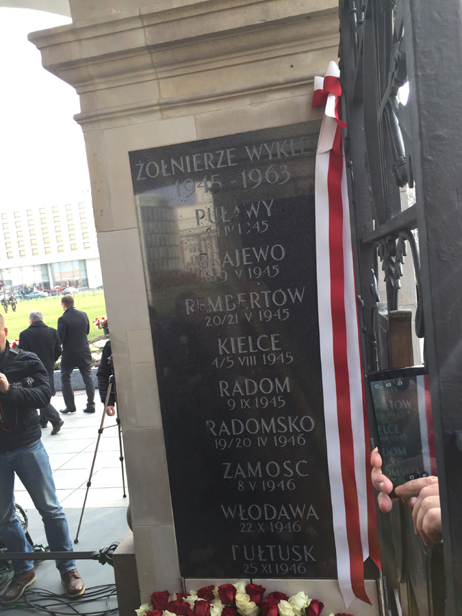 Na tablicy znajdują się miejsca bitew, w trakcie których Żołnierze Wyklęci uwalniali więźniów politycznych z więzień PRL-owskiej bezpieki, m.in. Pułtusk, 25 XI 1946.