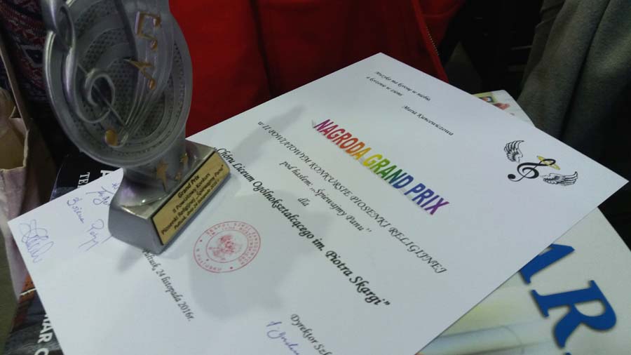 24 listopada 2016 r. chór Liceum Ogólnokształcącego brał udział w II Powiatowym Konkursie Piosenki Religijnej „Śpiewajmy Panu”. Piosenka „Błogosław duszo moja Pana” w wykonaniu naszego chóru okazała się bezkonkurencyjna – za uśmiechnięte i radosne śpiewanie zostaliśmy nagrodzeni Grand Prix II Powiatowego Konkursu Piosenki Religijnej „Śpiewajmy Panu”.