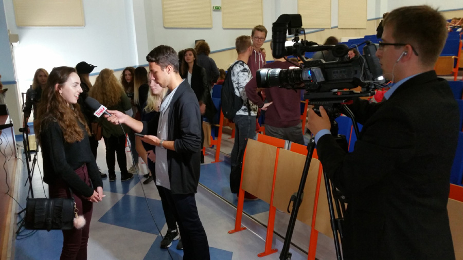Warsztaty składały się z trzech bloków: telewizji, radia oraz prasy. W pierwszej części zostały przedstawione mechanizmy działania mediów; techniki zwrócenia uwagi widza na przekazywaną treść, sposoby użycia greenscreena i wozu telewizyjnego. Uczestnicy dowiedzieli się jaki udział ma w odbiorze obraz (70%), dźwięk (23%) i informacja (7%). Zostały zaprezentowane technologie manipulacji, czego przykładami są ustawienie światła, makijaż, podstawowe zasady retoryki. Kolejny blok dotyczył radia, prowadzący pokazał jak ważną rolę odgrywa przetworzenie dźwięku w reklamach, wywiadach. Ostatnia część poświęcona była prasie. Uczniowie poznali jak opracowywane są materiały prasowe oraz na jakich kwestiach skupiają się dziennikarze podczas tworzenia treści. Ciekawym urozmaiceniem była możliwość przeprowadzania wywiadu telewizyjnego i radiowego oraz stworzenia notatki prasowej. Prelekcję uważamy za ciekawą oraz wartą uwagi formą rozwijania naszych zainteresowań.