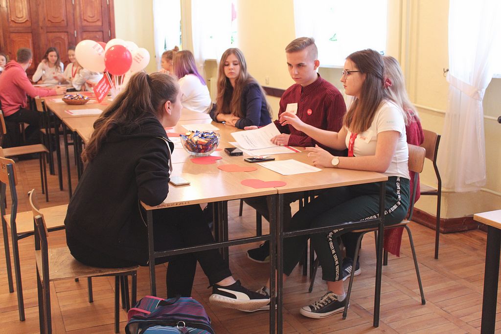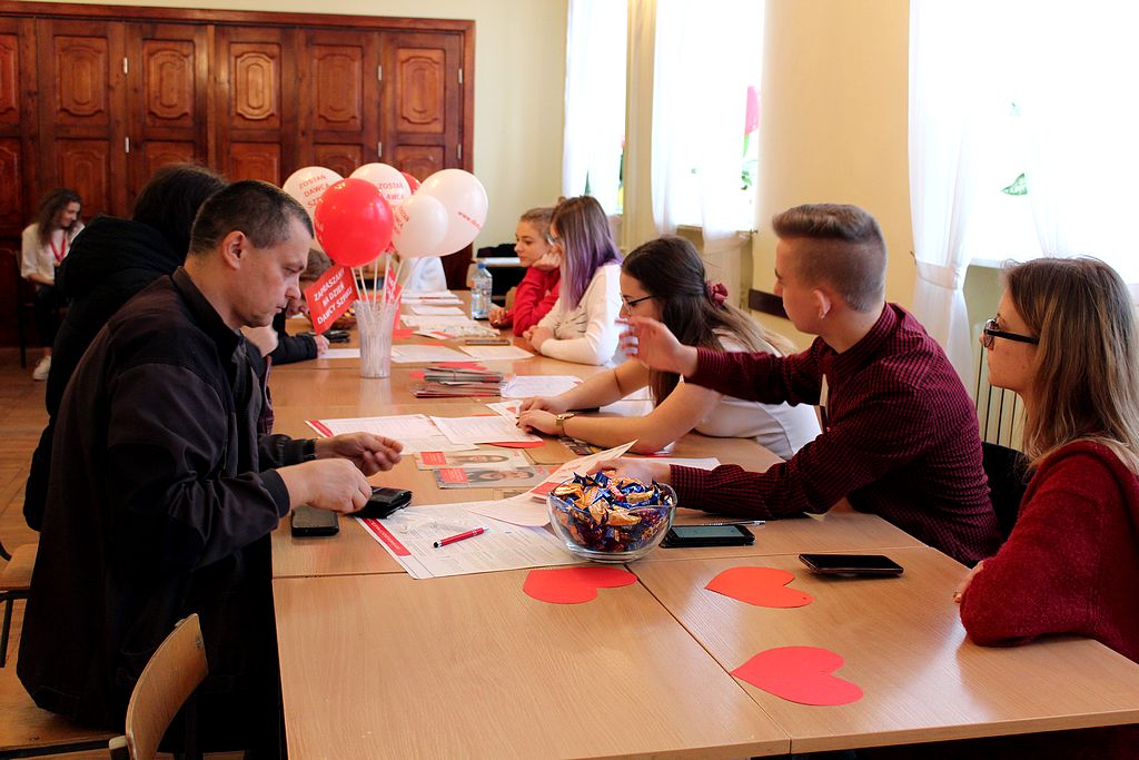 14 lutego był w szkole wyjątkowym dniem, i to nie tylko z powodu Walentynek. Już przy wejściu witały wchodzących plakaty, zaproszenia, czerwone serduszka, białe i czerwone balony z logo Fundacji DKMS. Atmosfera akcji była naprawdę niezwykła. W pięknie udekorowanej auli szkolnej już o godzinie 8.50 wolontariusze z radością przywitali pierwszą Osobę, która przyszła zarejestrować się jako potencjalny dawca szpiku. I tak już było do godziny 17.00! Wolontariusze zarejestrowali aż 71 potencjalnych dawców szpiku! Dla wszystkich organizatorów #KOMÓRKOMANII w Skardze była to wielka radość a jednocześnie miłe zaskoczenie, że tak wiele osób odpowiedziało na nasze zaproszenie, rozumiało cel i zechciało zaangażować się w bezcenną pomoc innym.