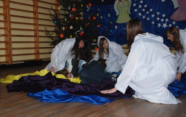 Wystawione zostały niekonwencjonalne Jasełka w postaci pantomimy.