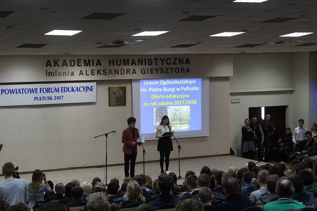 16.03.2017 r. po raz kolejny nasze Liceum wzięło udział w „Powiatowym Forum Edukacyjnym”, które odbyło się w Akademii Humanistycznej im. Aleksandra Gieysztora. Uczniowie razem z panią dyrektor Barbarą Meredyk przedstawili ofertę edukacyjną na rok szkolny 2017/2018. Młodzież zaprezentowała swoje pasje i zainteresowania, projekty zrealizowane na lekcjach informatyki (w ramach zajęć z robotyki i mechatroniki), a także pokazy chemiczne.