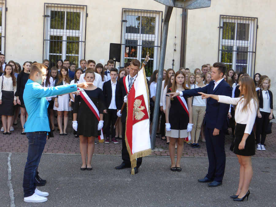 Poszczególne klasy reprezentowali: klasę I A Piotr Zabielski, klasę I B Dawid Siemieniak , klasę IC Gabriela Orłowska, klasę ID Patrycja Koczara. Po zakończeniu uroczystego spotkania uczniowie rozeszli się do sal lekcyjnych, by spotkać się z wychowawcami.