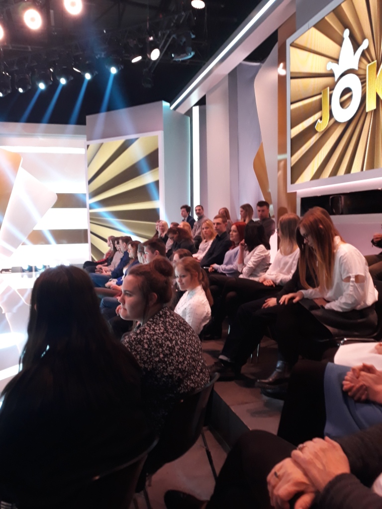 07.02.2018r. po raz kolejny uczestniczyliśmy w nagraniu programu telewizyjnego. Tym razem był to teleturniej JOKER prowadzony przez Krzysztofa Ibisza. Poznaliśmy studio Super Polsat, a także zobaczyliśmy, jak wygląda proces nagrań z perspektywy osób zasiadających na widowni. Nie jest to jednak koniec naszej przygody, ponieważ już dziś otrzymaliśmy nowe propozycje. B.Czerniakowska- Koc