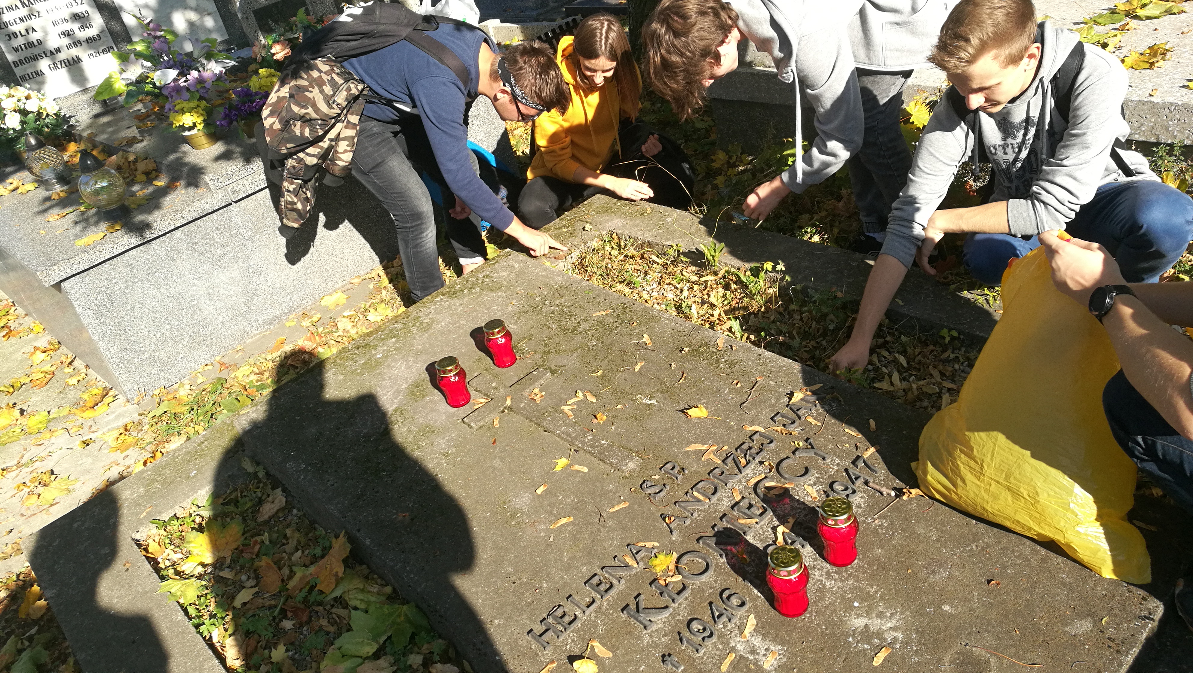 Zgodnie z piękną tradycją naszej szkoły przed Dniem Edukacji Narodowej uczniowie wybrali się na pułtuskie cmentarze, by na grobach zmarłych nauczycieli Liceum zapalić znicze. W tym roku klasa II B2 pod opieką wychowawczyni p. Anny Krystoszyk uporządkowała mogiły, szczególną troską otaczając te najstarsze, których już chyba nikt nie odwiedza.
