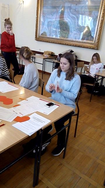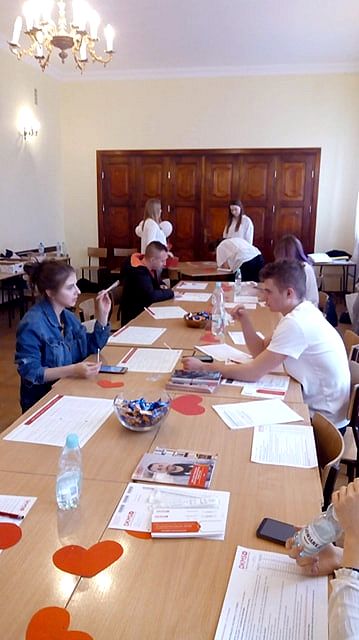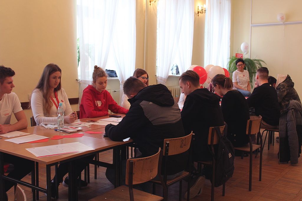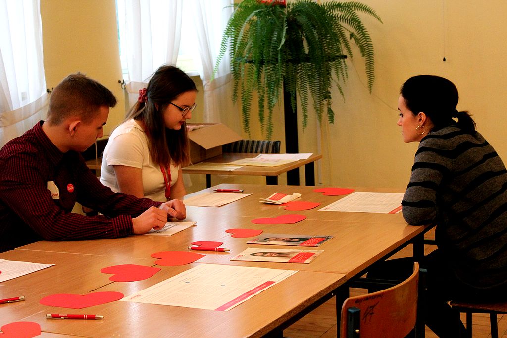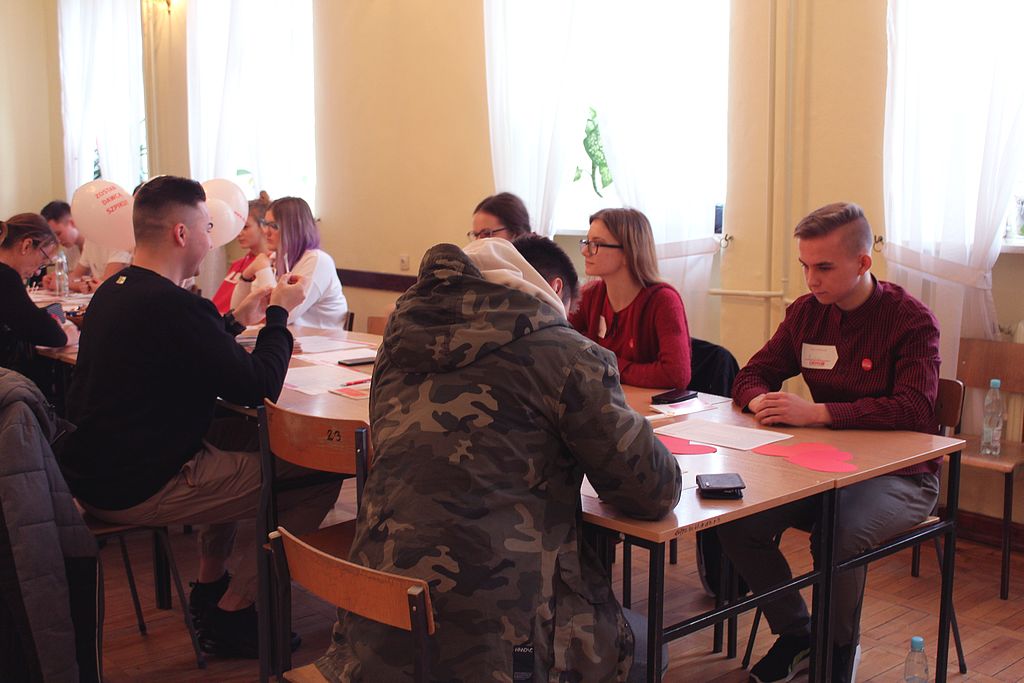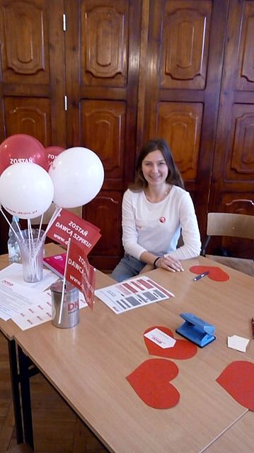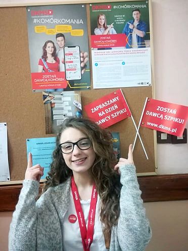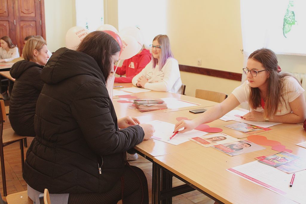 14 lutego był w szkole wyjątkowym dniem, i to nie tylko z powodu Walentynek. Już przy wejściu witały wchodzących plakaty, zaproszenia, czerwone serduszka, białe i czerwone balony z logo Fundacji DKMS. Atmosfera akcji była naprawdę niezwykła. W pięknie udekorowanej auli szkolnej już o godzinie 8.50 wolontariusze z radością przywitali pierwszą Osobę, która przyszła zarejestrować się jako potencjalny dawca szpiku. I tak już było do godziny 17.00! Wolontariusze zarejestrowali aż 71 potencjalnych dawców szpiku! Dla wszystkich organizatorów #KOMÓRKOMANII w Skardze była to wielka radość a jednocześnie miłe zaskoczenie, że tak wiele osób odpowiedziało na nasze zaproszenie, rozumiało cel i zechciało zaangażować się w bezcenną pomoc innym.